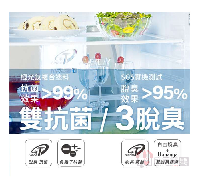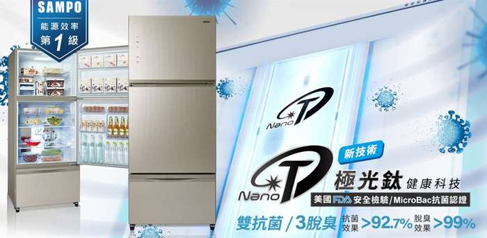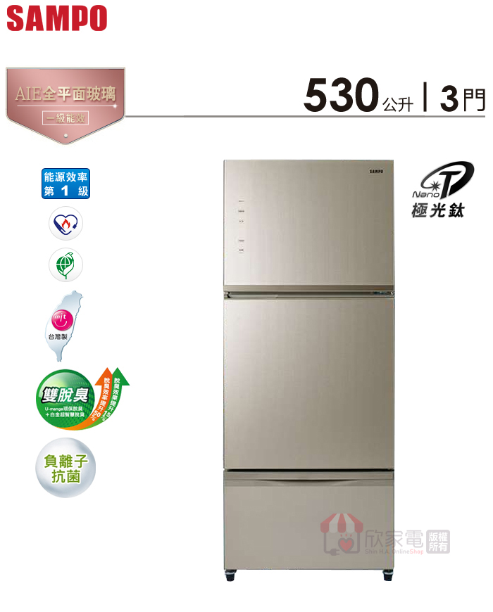 SAMPO 聲寶 530公升 NanoTi 變頻玻璃三門冰箱