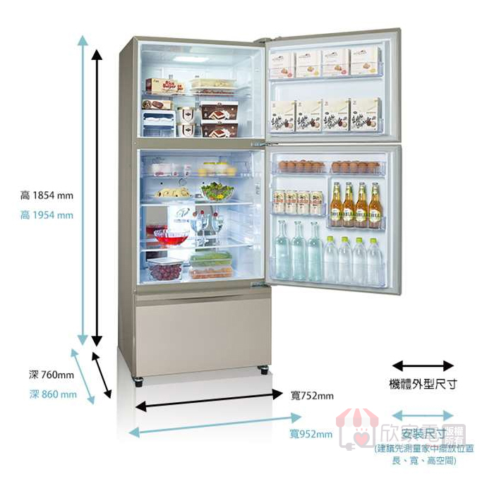 機體尺寸(mm):寬752 × 高1854 × 深760