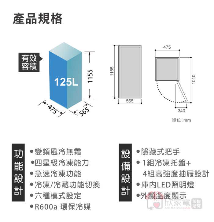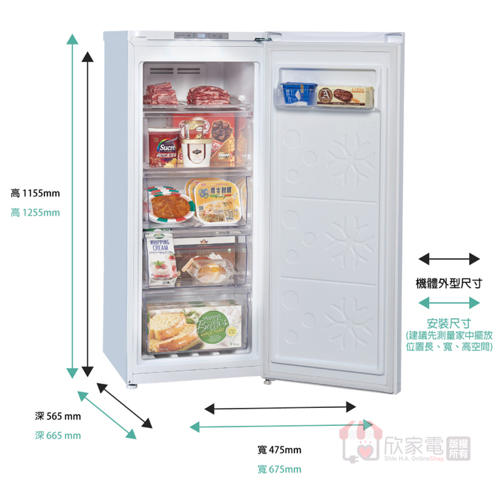 外型尺寸(mm):寬475 × 高1155 × 深565