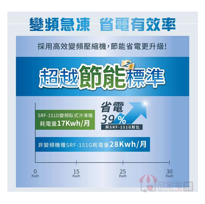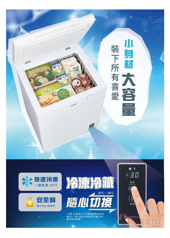 SAMPO 聲寶 150公升 變頻直冷臥式冷凍櫃