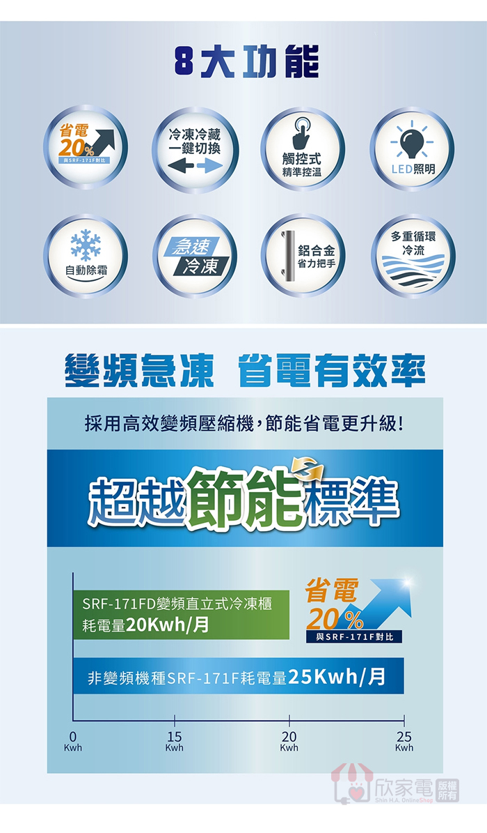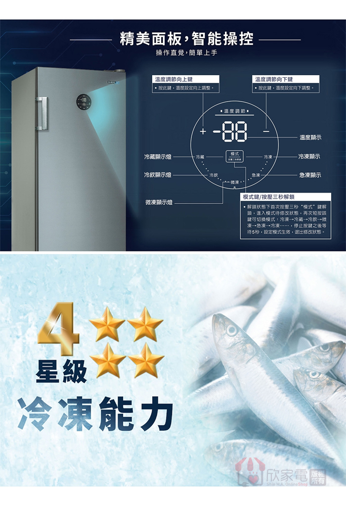 溫度範圍:冷凍 -1~-24、冷藏 0~8