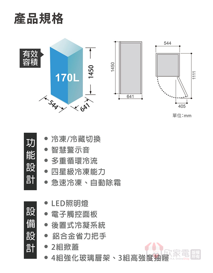 有效內容積(L):170