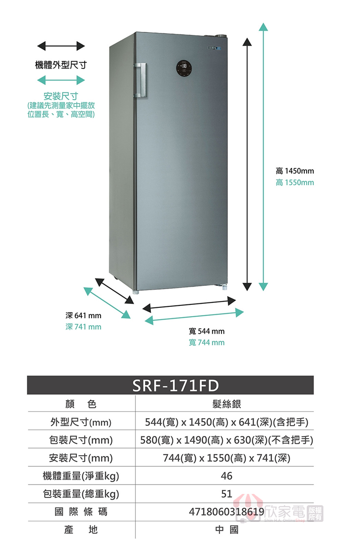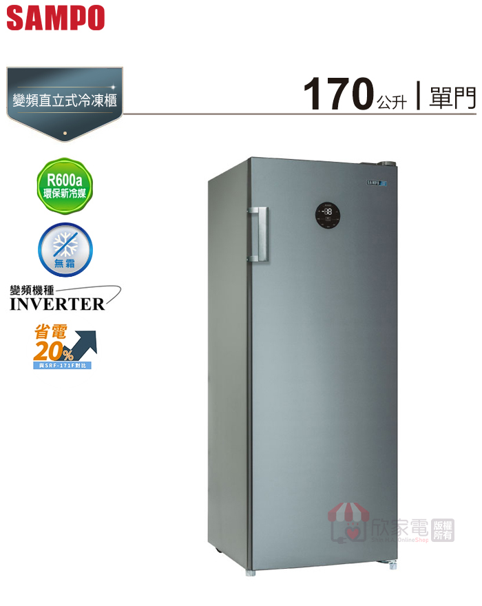 SAMPO 聲寶 170公升 變頻風冷無霜直立式冷凍櫃