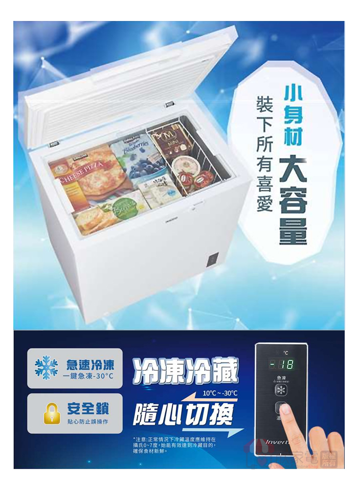 SAMPO 聲寶 200公升 變頻直冷臥式冷凍櫃