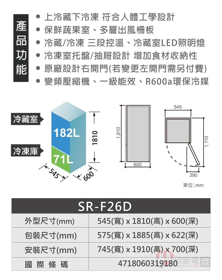 外型尺寸(mm):寬545 × 高1810 × 深600