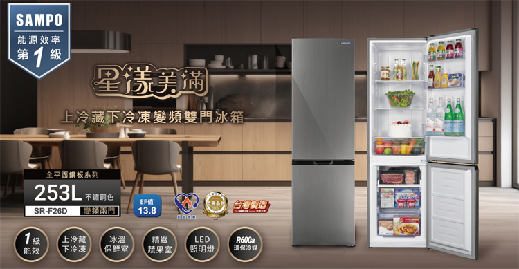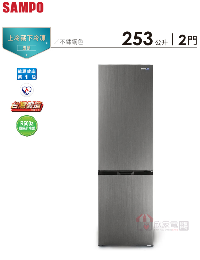 SAMPO 聲寶 253公升 星漾美滿變頻雙門冰箱 -不鏽鋼色