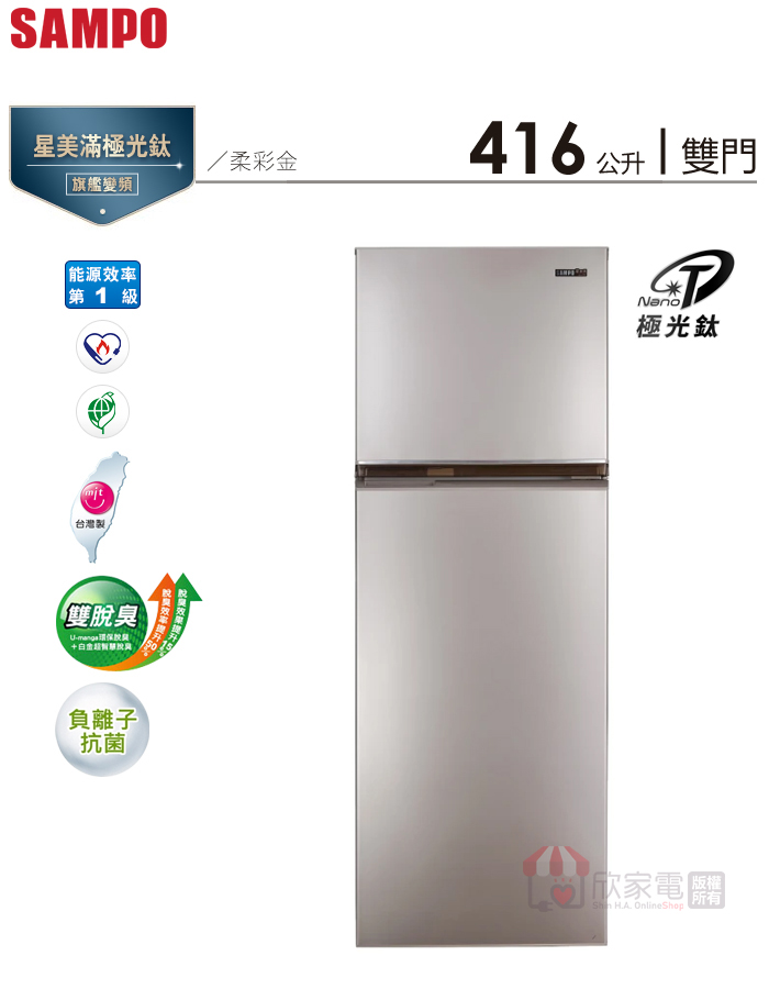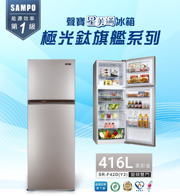 SAMPO 聲寶 416公升 星美滿極光鈦變頻雙門冰箱 -柔彩金