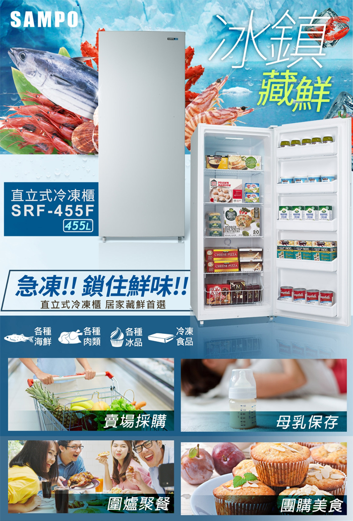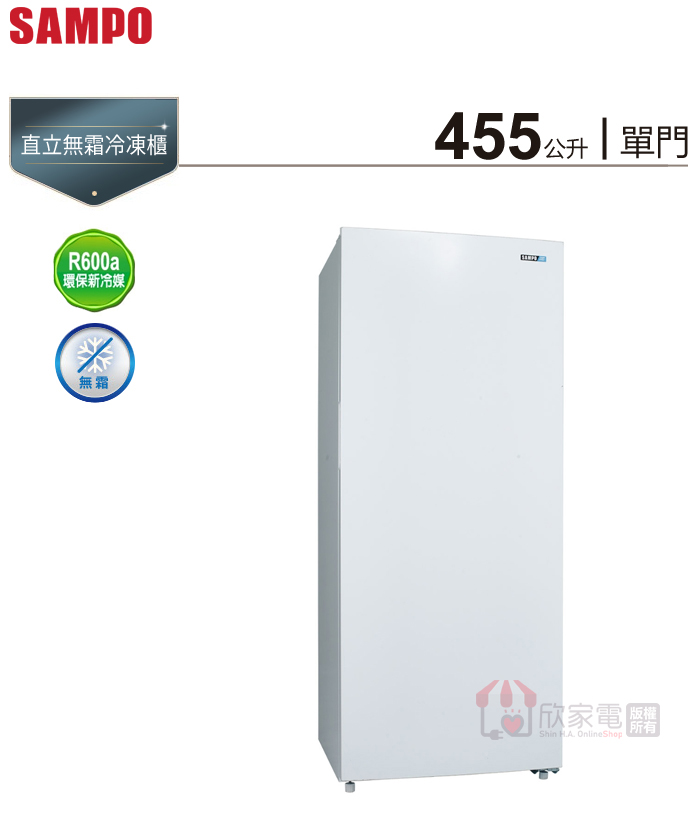 SAMPO 聲寶 455公升 直立式無霜冷凍櫃