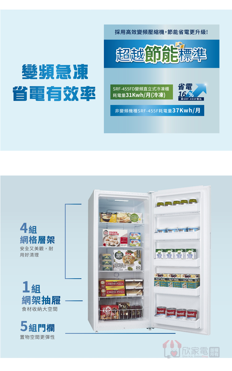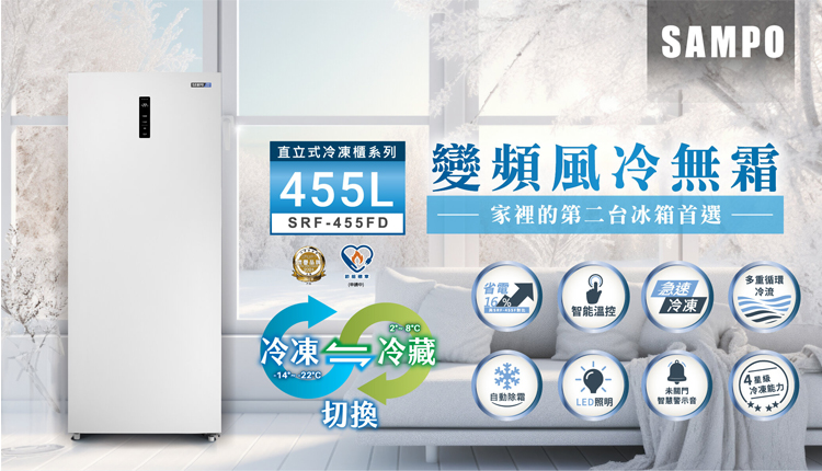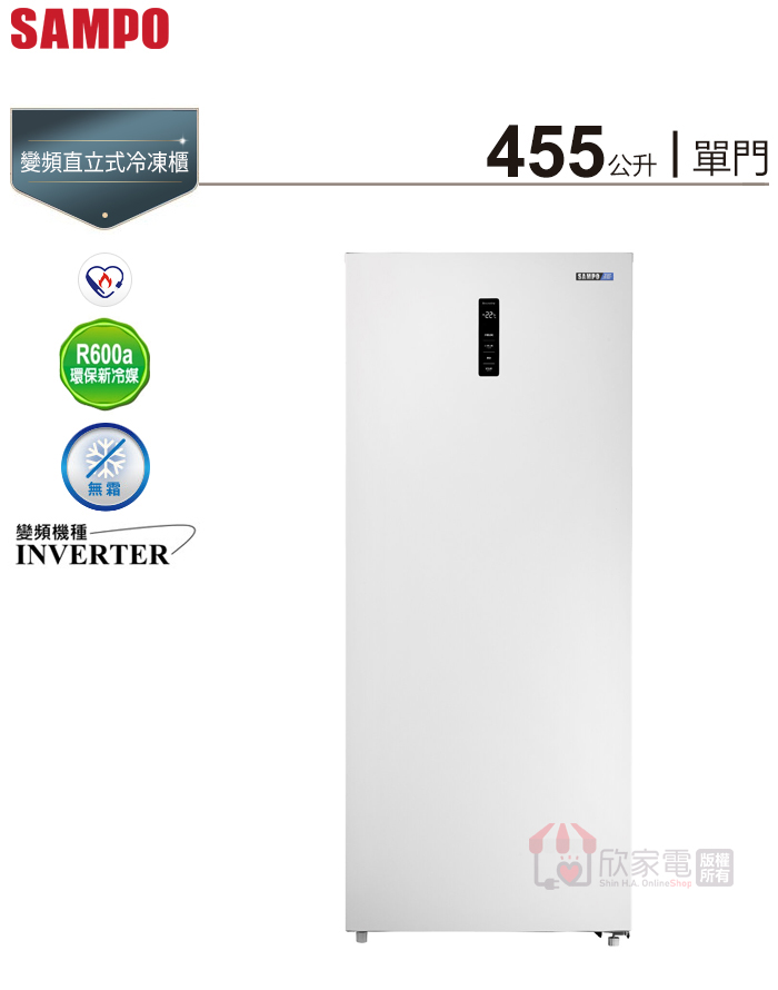 SAMPO 聲寶 455公升 變頻直立式冷凍櫃