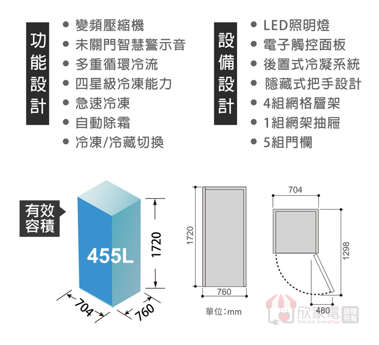 有效內容積(L):455