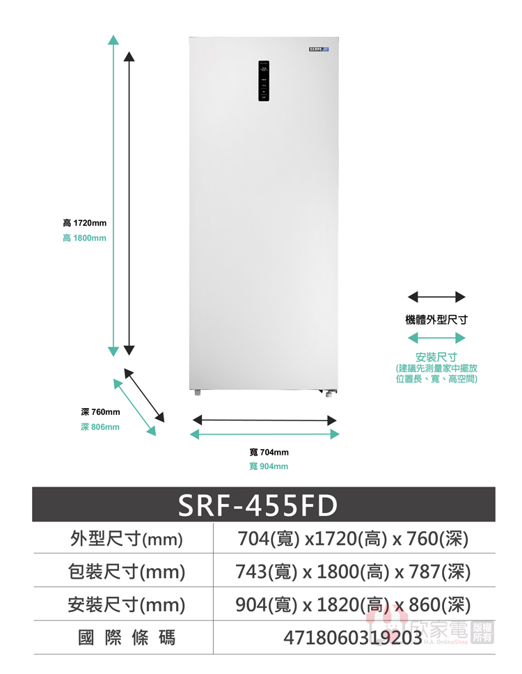 外型尺寸(mm):寬704 × 高1720 × 深760