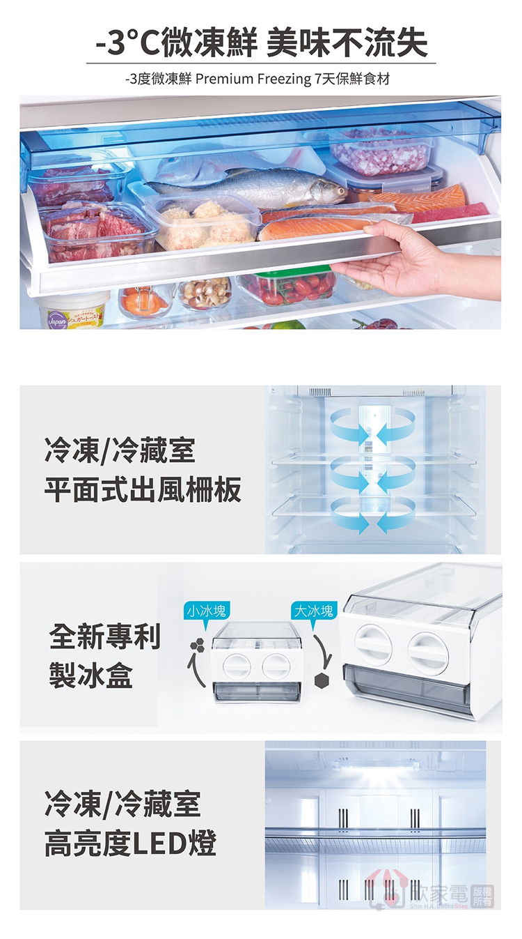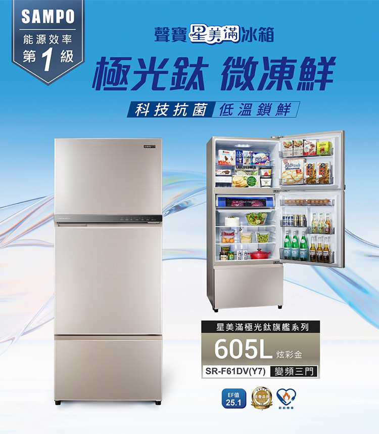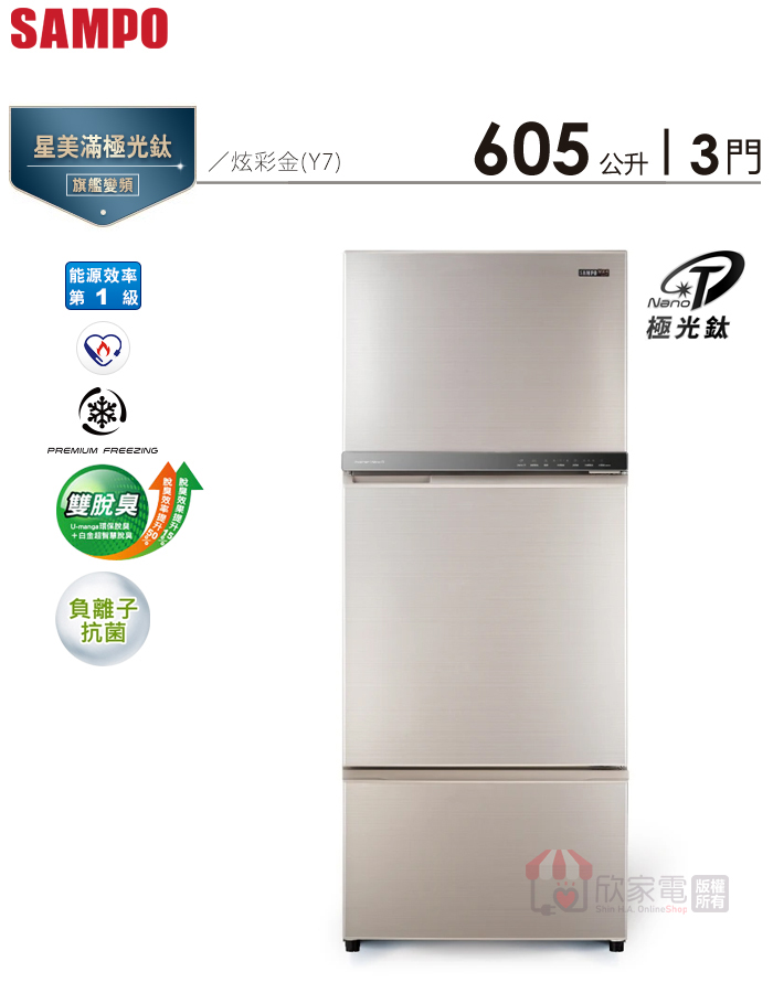 SAMPO 聲寶 605公升 星美滿極光鈦變頻三門冰箱 -炫彩金