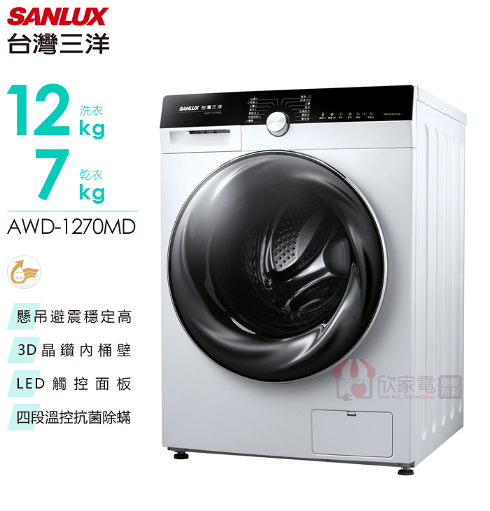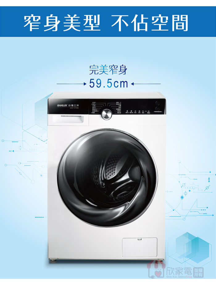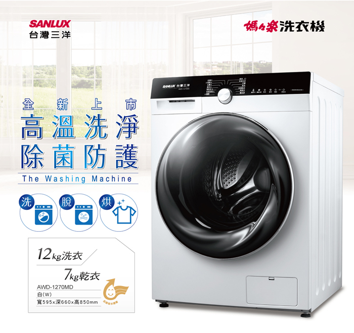 SANLUX 台灣三洋 12KG 變頻洗脫烘滾筒洗衣機