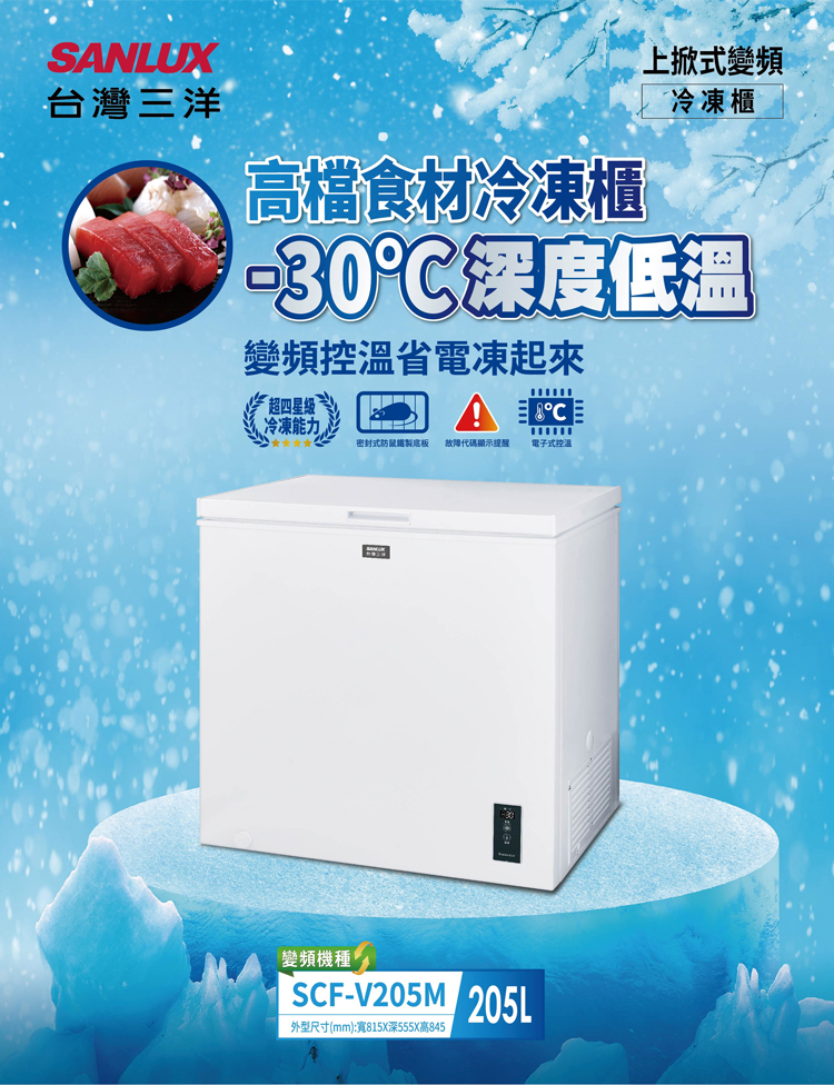SANLUX 台灣三洋 205公升 深度低溫-30度C變頻上掀式冷凍櫃