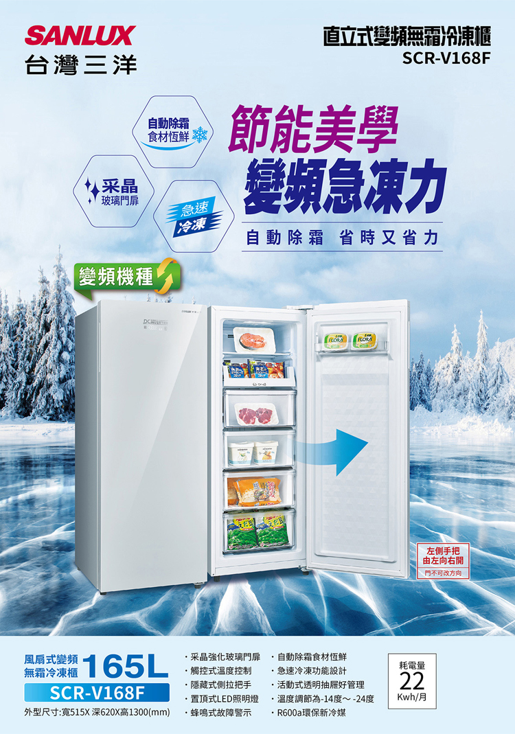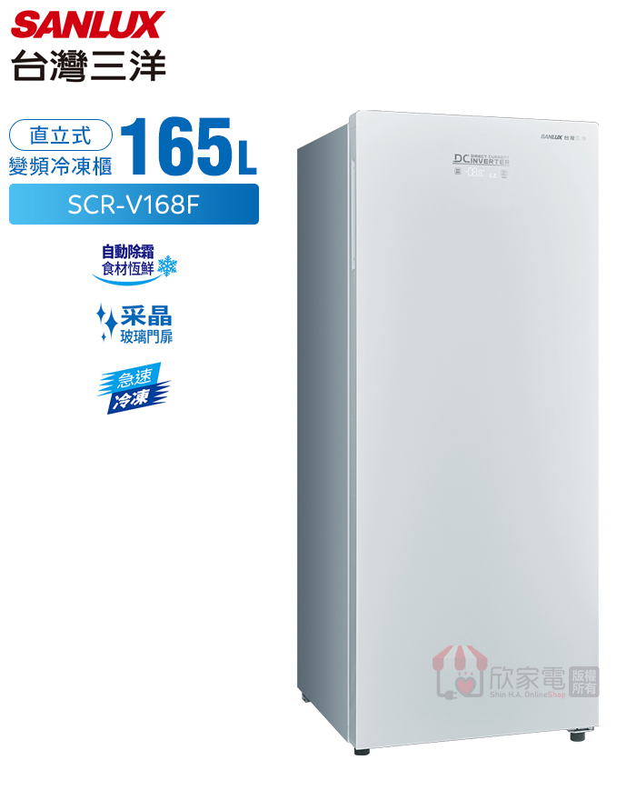 SANLUX 台灣三洋 165公升 變頻風扇無霜直立式冷凍櫃