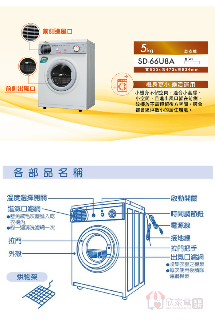 SANLUX 台灣三洋 5KG 機械式乾衣機