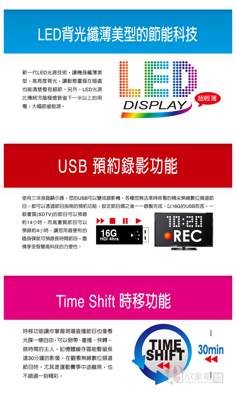 ◆具有USB埠PVR/時移錄製功能-30分鐘