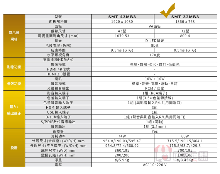 SANLUX 台灣三洋 32型 LED液晶顯示器 SMT-32MB3
