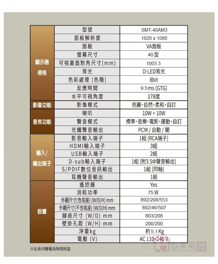 SANLUX 台灣三洋 40型 FHD LED液晶顯示器 SMT-40AM3