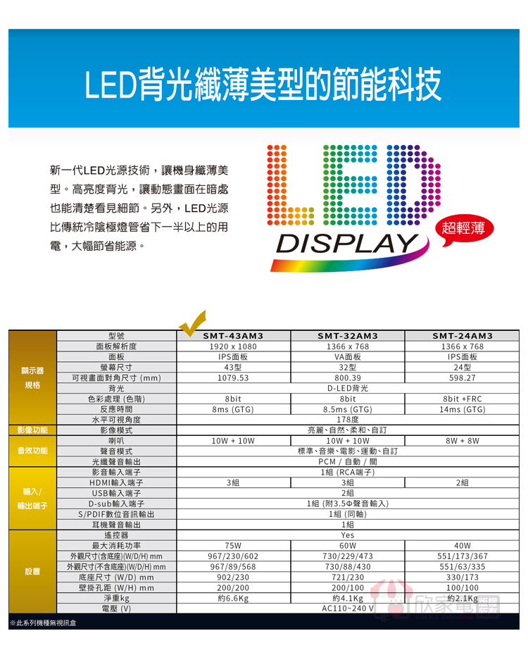 SANLUX 台灣三洋 43型 FHD LED液晶顯示器 SMT-43AM3