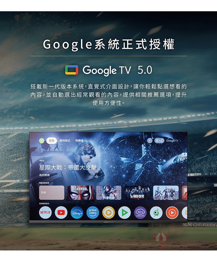 內建應用程式:Netflix、YouTube、prime video、愛奇藝、Multi、Google Play