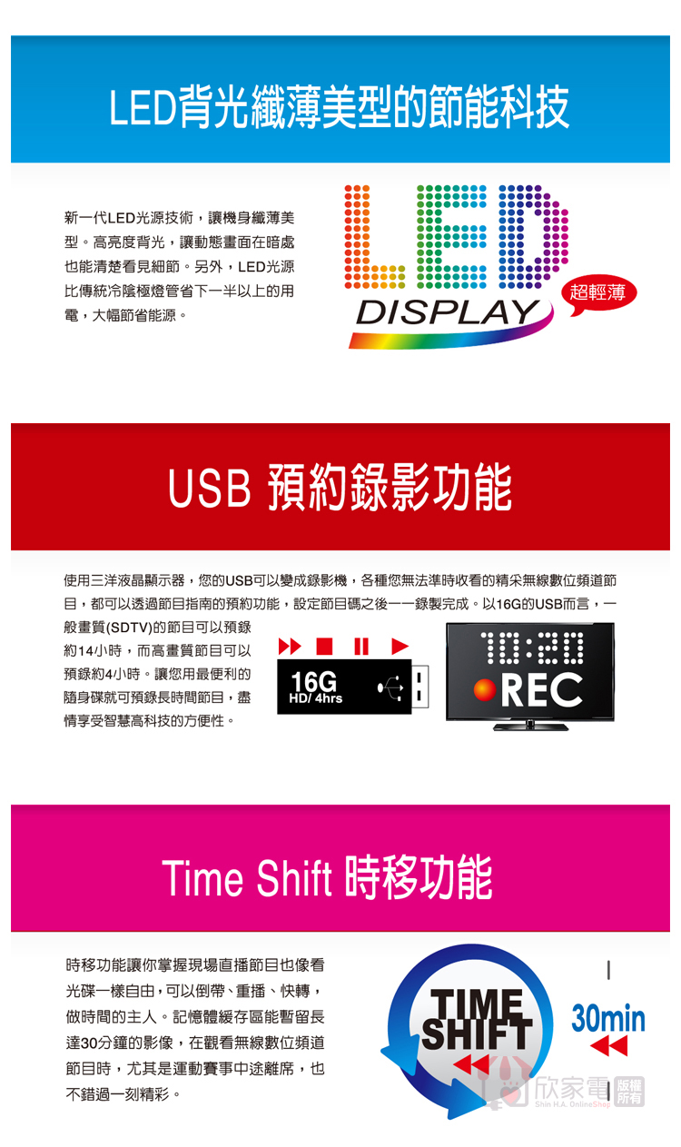 ◆具有USB埠PVR/時移錄製功能-30分鐘
