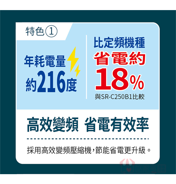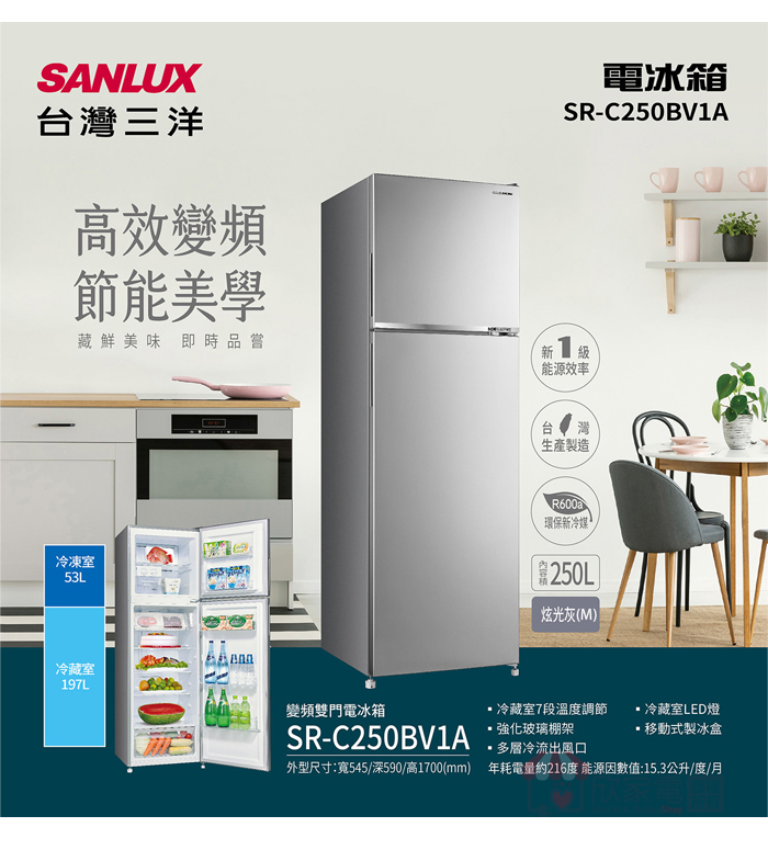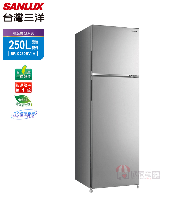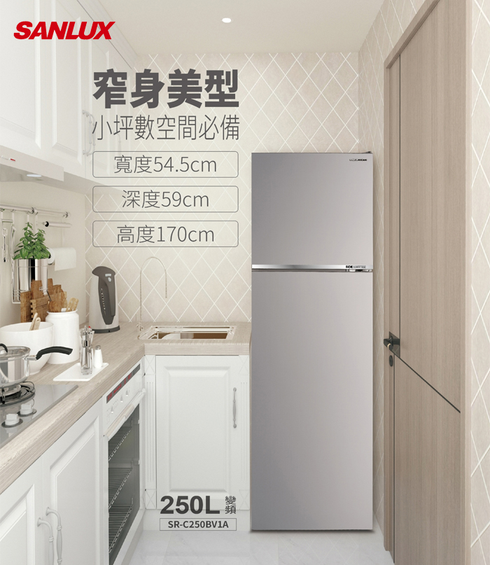 SANLUX 台灣三洋 250公升 窄版美型一級變頻雙門電冰箱