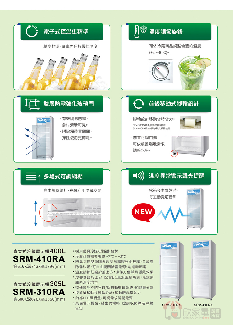 SANLUX 台灣三洋 400公升 直立式冷藏展示櫃