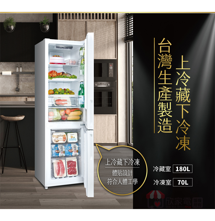 容量:250L (冷凍室 70L/冷藏室 180L)