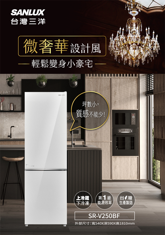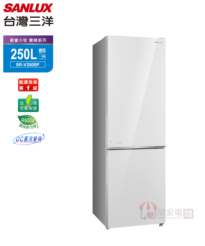 SANLUX 台灣三洋 250公升 都會小宅一級變頻雙門電冰箱 -琉璃白