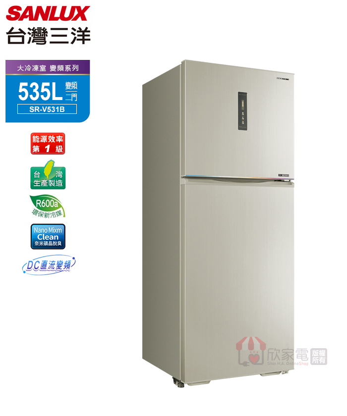SANLUX 台灣三洋 535公升 一級變頻雙門電冰箱 -尊爵銀