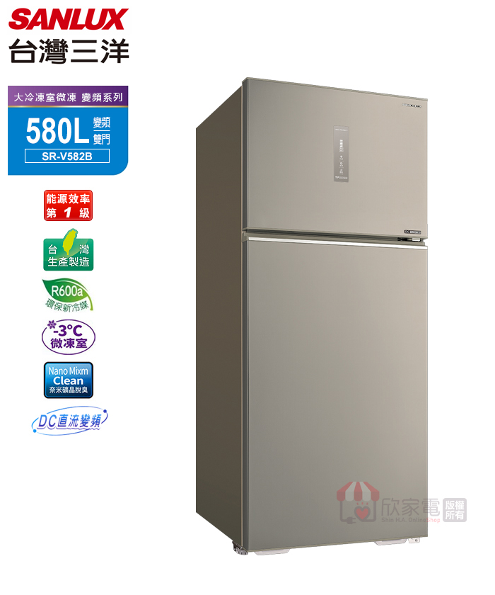 SANLUX 台灣三洋 580公升 -3°C微凍室一級變頻雙門電冰箱 -雅緻金