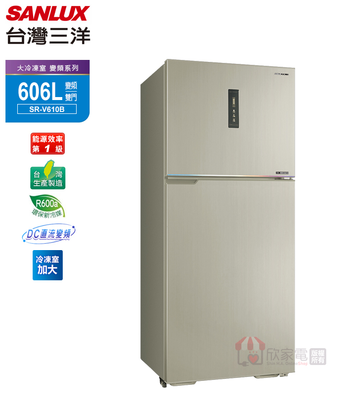 SANLUX 台灣三洋 606公升 大冷凍庫變頻雙門電冰箱 -尊爵銀