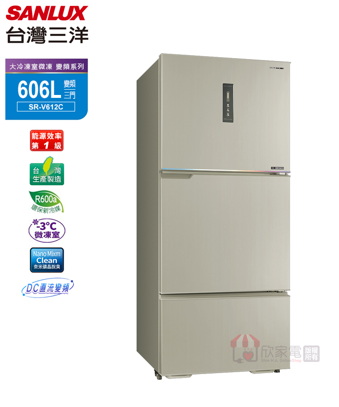SANLUX 台灣三洋 606公升 -3°C微凍室一級變頻三門電冰箱 -尊爵銀