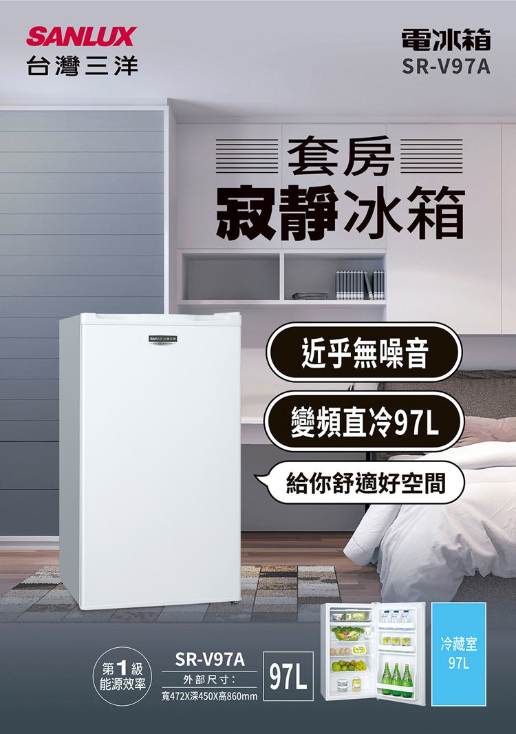 SANLUX 台灣三洋 97公升 都會小宅一級變頻單門電冰箱 -珍珠白