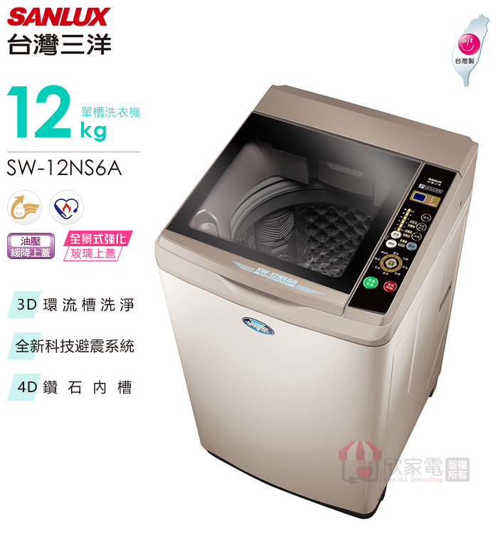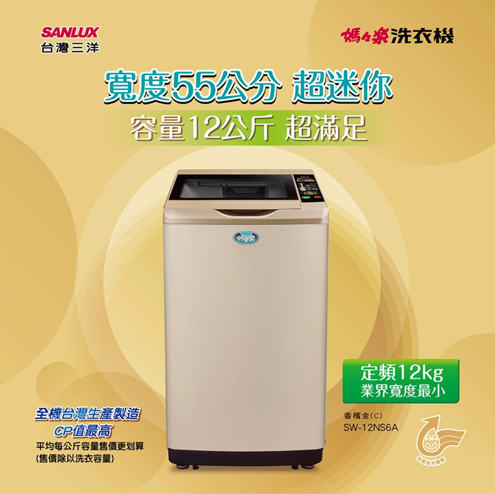 SANLUX 台灣三洋 12KG 全自動單槽洗衣機 -香檳金