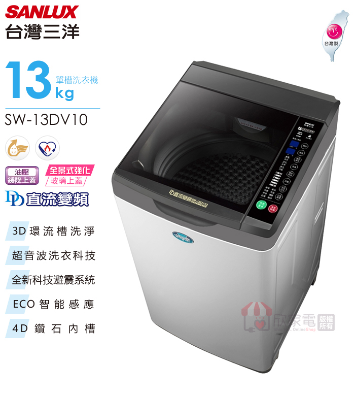 SANLUX 台灣三洋 13KG DD直流變頻超音波單槽洗衣機