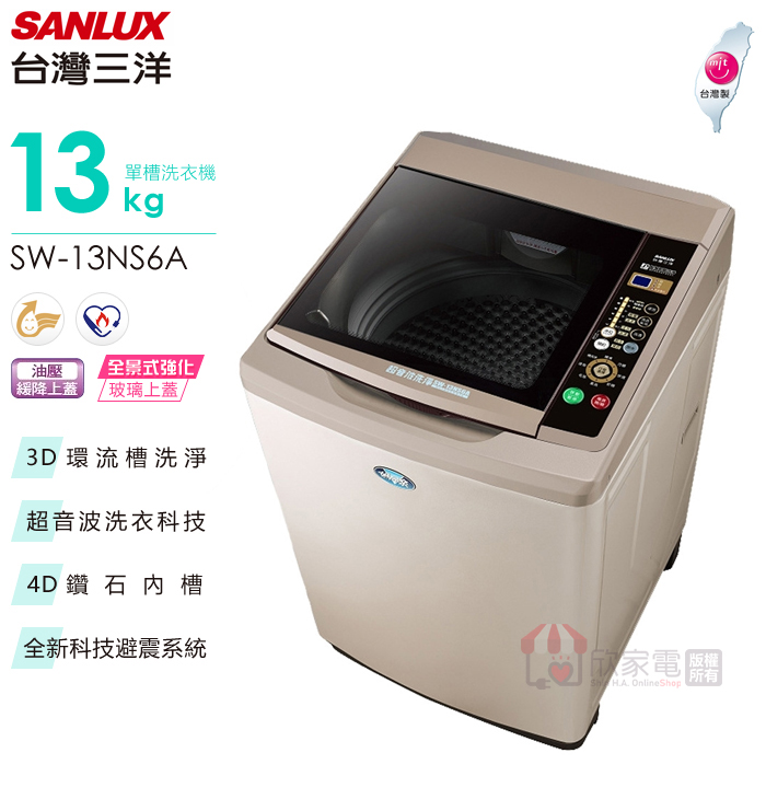 SANLUX 台灣三洋 13KG 超音波單槽洗衣機