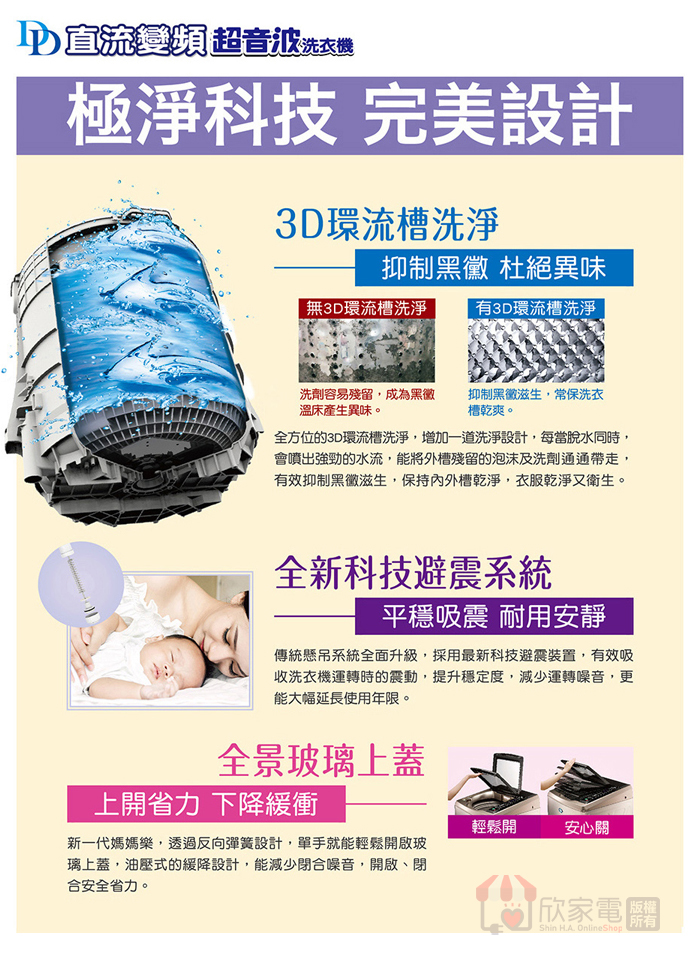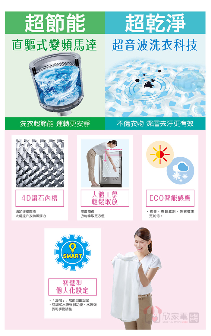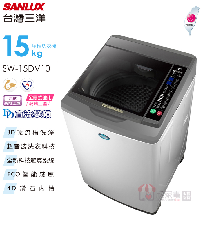SANLUX 台灣三洋 15KG DD直流變頻超音波單槽洗衣機