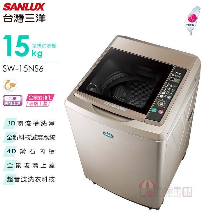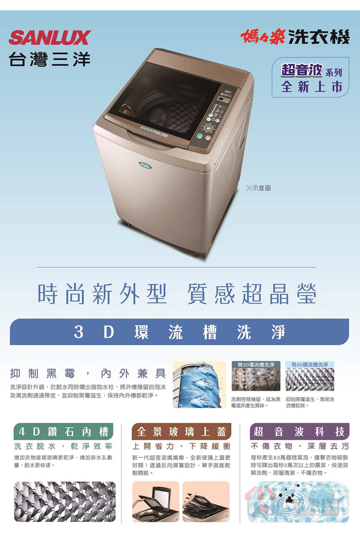 SANLUX 台灣三洋 15KG 超音波單槽洗衣機