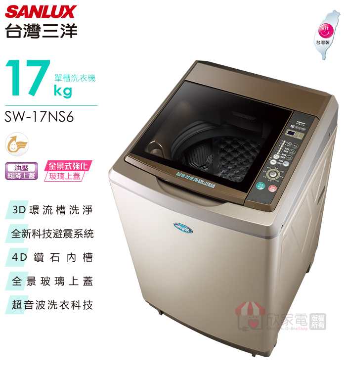 SANLUX 台灣三洋 17KG 超音波單槽洗衣機