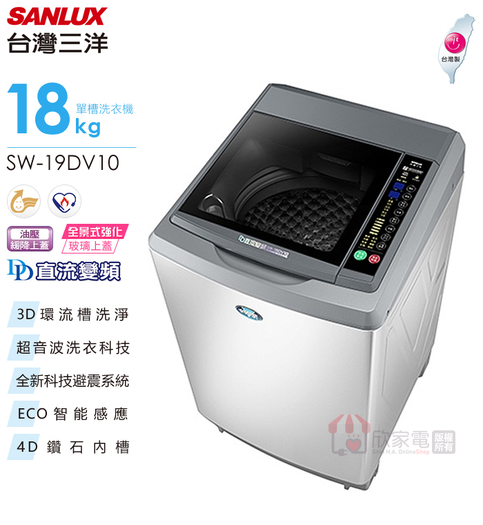 SANLUX 台灣三洋 18KG DD直流變頻超音波單槽洗衣機