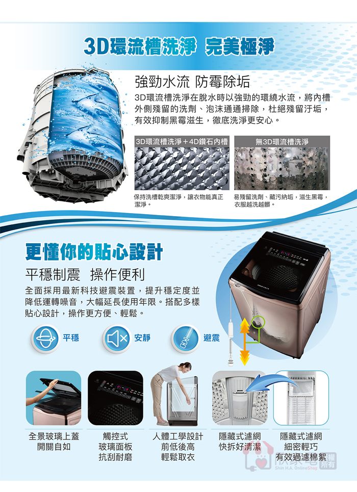 洗衣行程:標準、污髒、快速、記憶、毛毯、柔洗、護嬰、槽洗淨
