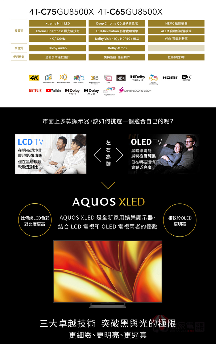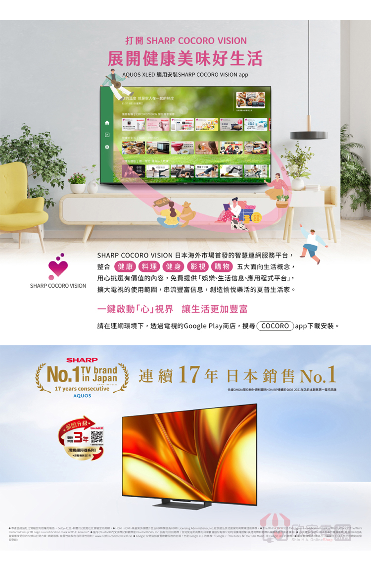 SHARP 夏普 65型 4K XLED智慧連網液晶顯示器