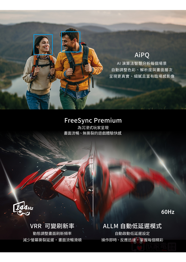 影音觀賞模式:User, Standard, Vivid, Sports, Movie, Game, Eco;Dolby Vision IQ / Dark / Vivid / Game