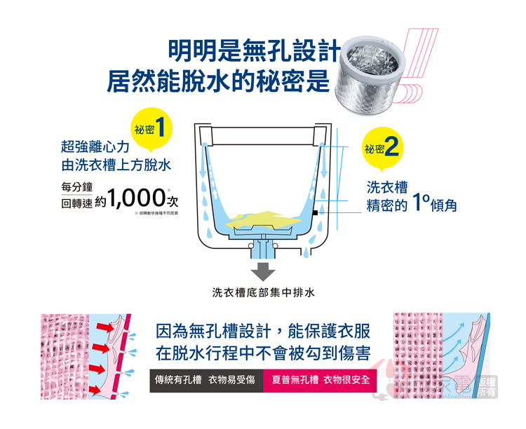 洗衣行程:標準、快洗、預清洗、頑固髒污、高級衣物、抗皺洗淨、冷風乾燥、毛毯、底槽洗淨、桶槽洗淨、桶槽乾燥