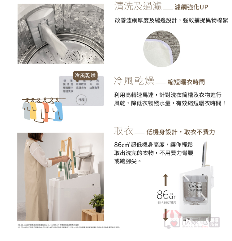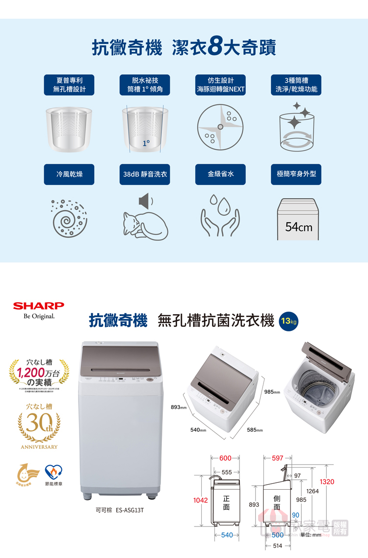 SHARP 夏普 13Kg 變頻無孔槽洗衣機