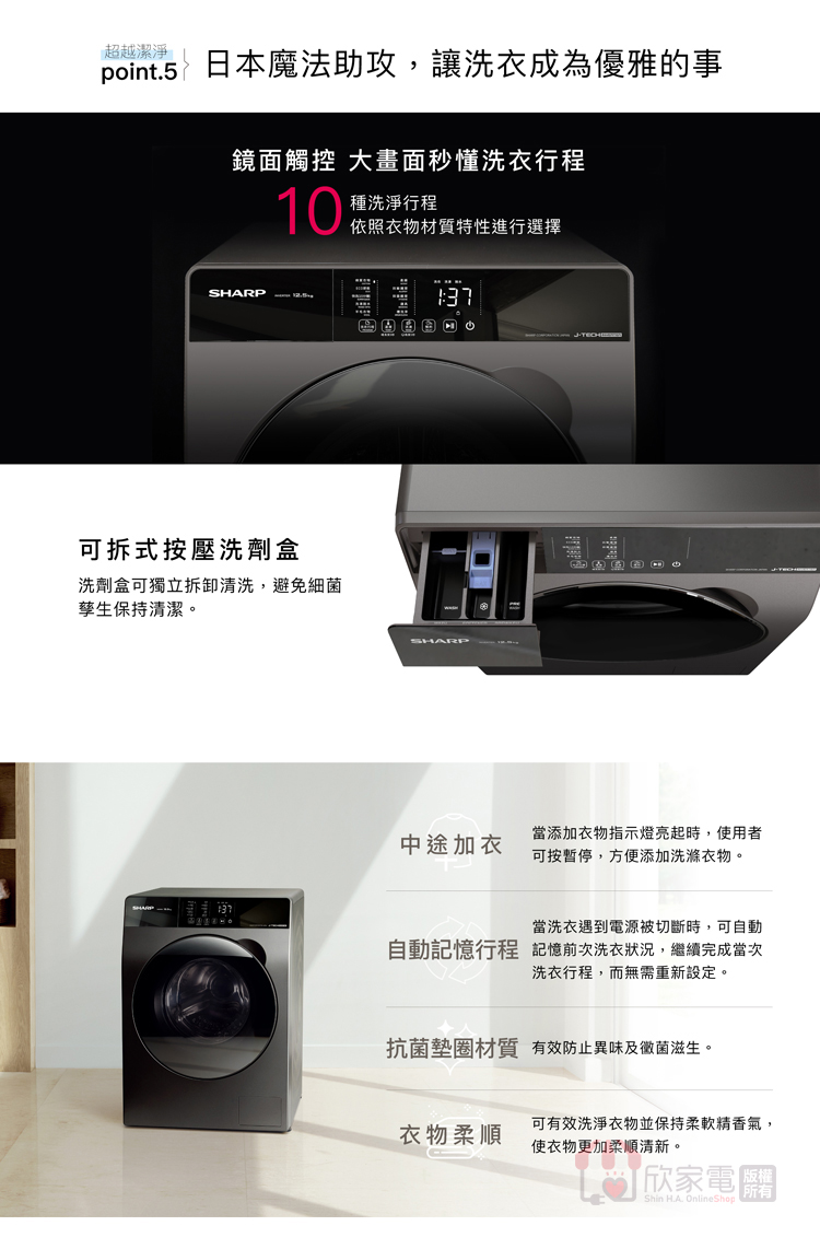 SHARP 夏寶 12.5Kg Pro-Flex 變頻滾筒洗衣機
