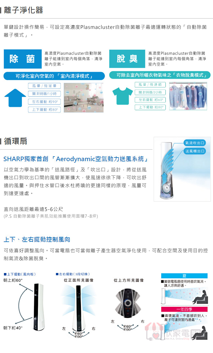 SHARP 夏普 自動除菌離子涼暖清淨機