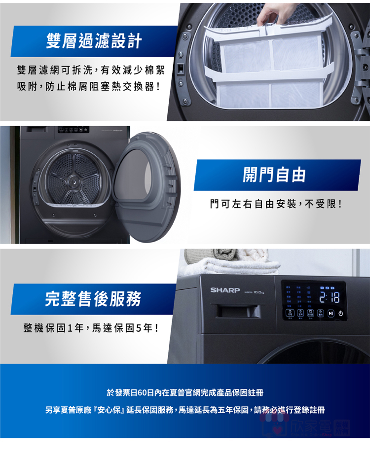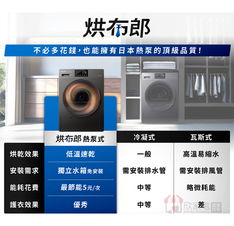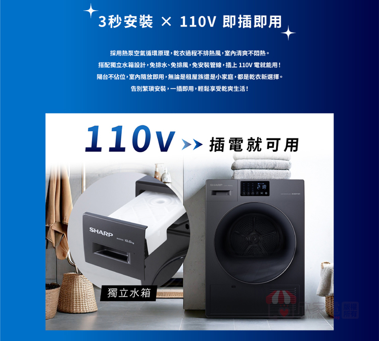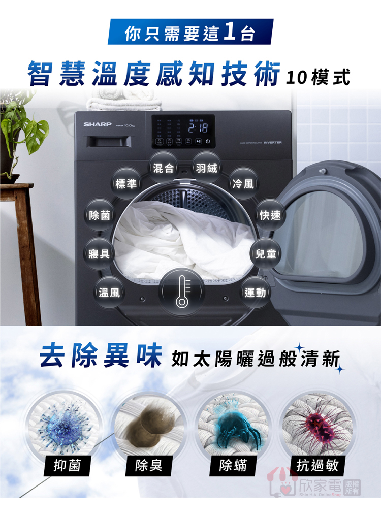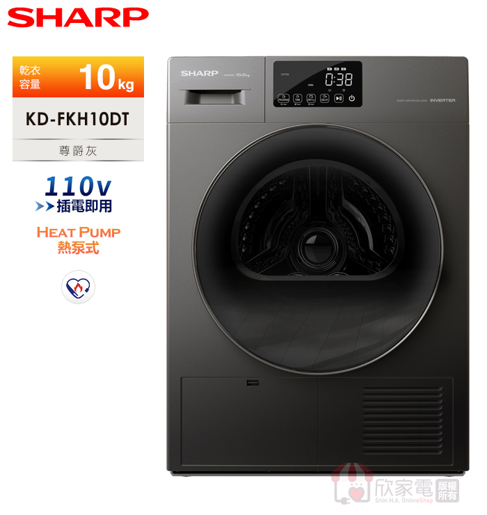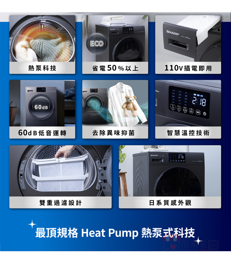 SHARP 夏普 10Kg 烘布郎 熱泵式滾筒乾衣機